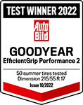 EfficientGrip Performance 2 ofera cu 50% mai multi kilometri si distanta scurta de franare pe drumuri umede si uscate. Performanta sa de distanta remarcabila provine din tehnologia Mileage Plus, care asigura o elasticitate ridicata a benzii de rulare, ceea ce duce la mai putine