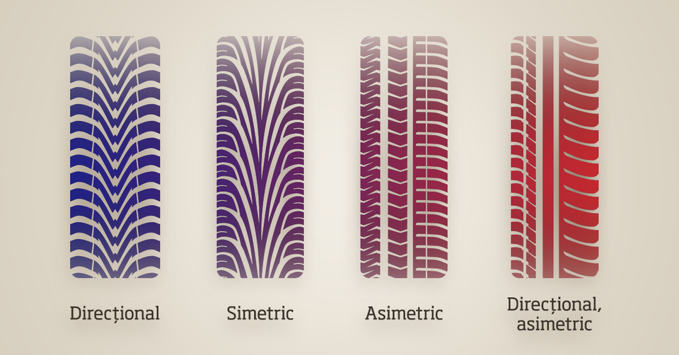 Nu toate anvelopele sunt dotate cu același design, în funcție de desenele de pe banda de rulare există 4 tipuri de anvelope: