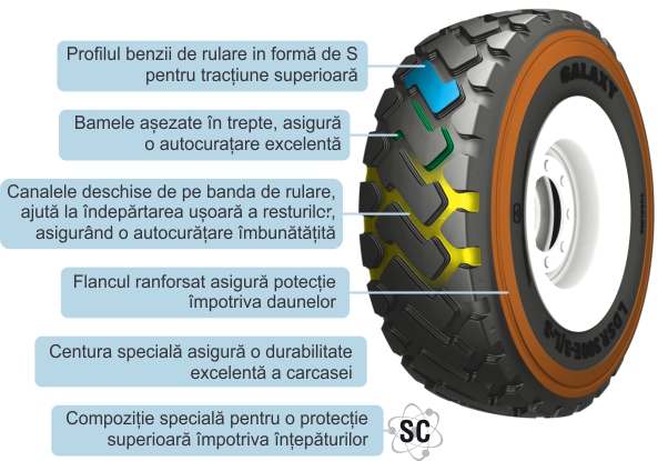 LDSR 300 este fabricat în mod special pentru încărcătoare frontale care operează în cele mai dificile condiții. Transportul încărcăturilor mari, necesită o stabilitate excelentă și robustețe. Construcția radială robustă și flancul puternic oferă anvelopei LDSR 300 forță și anduranță pentru a rezista în condiții dificile. Compoziția benzii de rulare asigură o protecție excelentă împotriva ruperilor și ciobiturilor, ajutând utilajul sa lucreze eficient, fără întreruperi cauzate de defecte la anvelope. Profilul benzii de rulare in formă de S și bamele de tracțiune în trepte, asigură o tracțiune optimă și o autocurățare îmbunătățită având ca rezultat o productivitate ridicată.